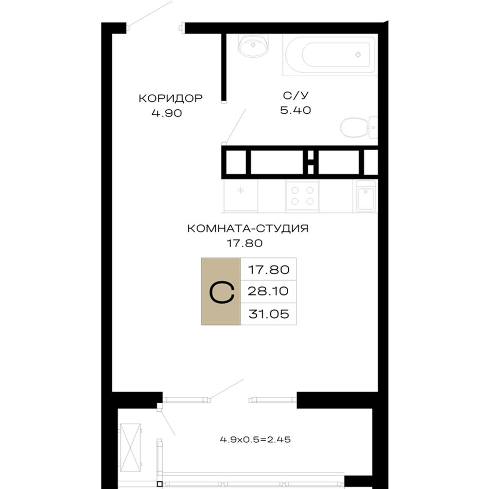 Студия — 31,05 м² 4/23 эт. в Дом 101