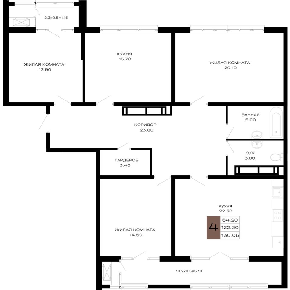 4+ комнатная — 130,05 м² 11/23 эт. в Дом 101