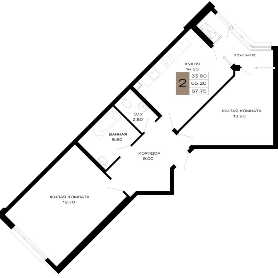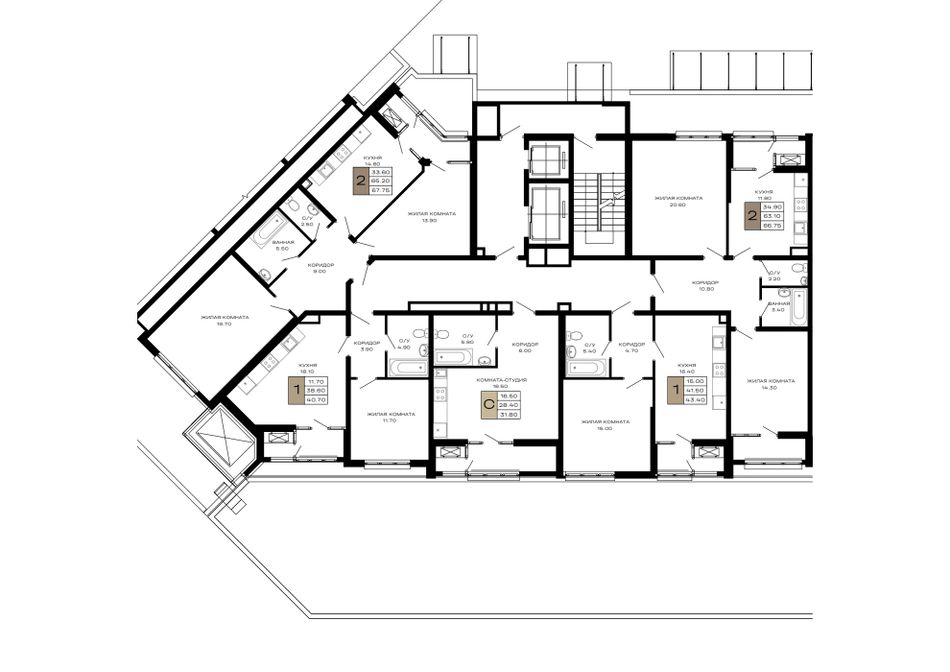 2-комнатная — 67,75 м² 3/23 эт. в Дом 101