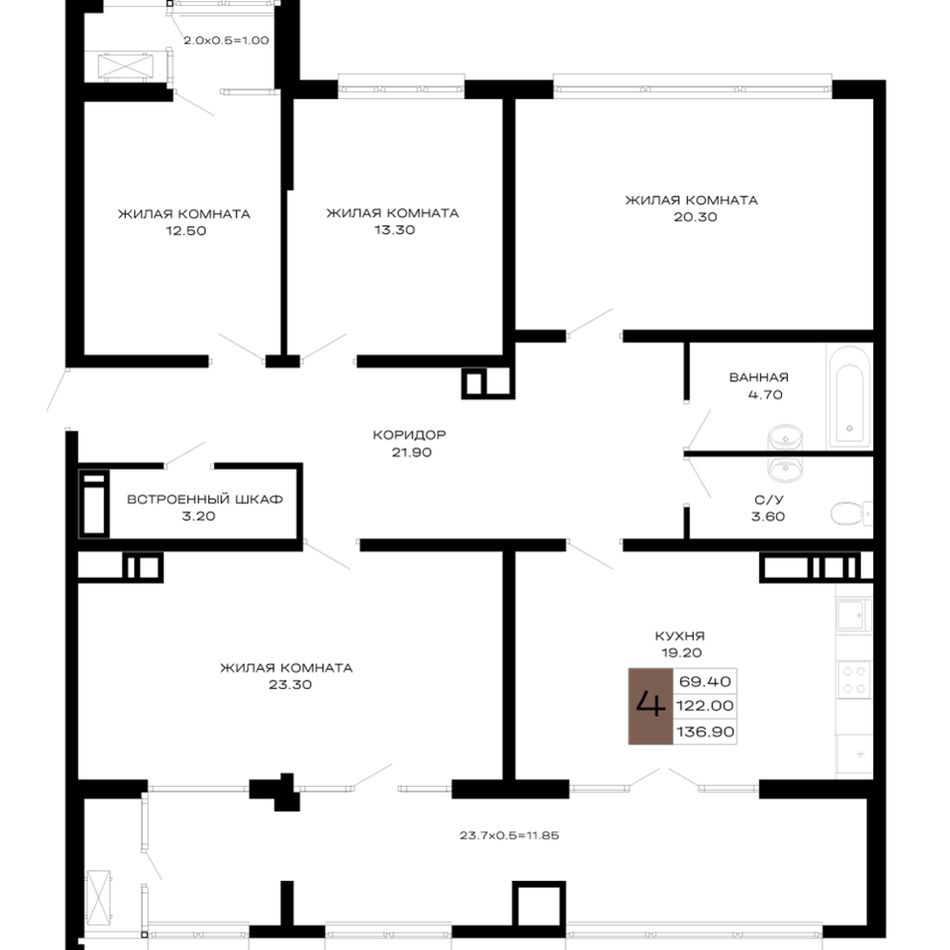 Общая площадь136,9 м²