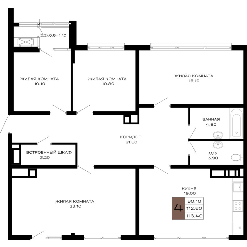 4+ комнатная — 116,4 м² 19/23 эт. в Дом 101
