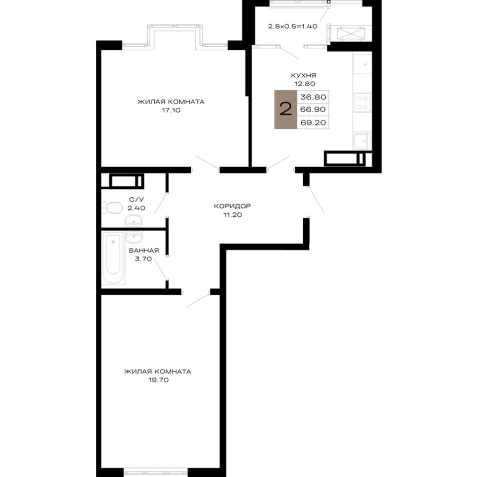Общая площадь69,2 м²