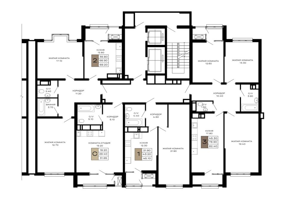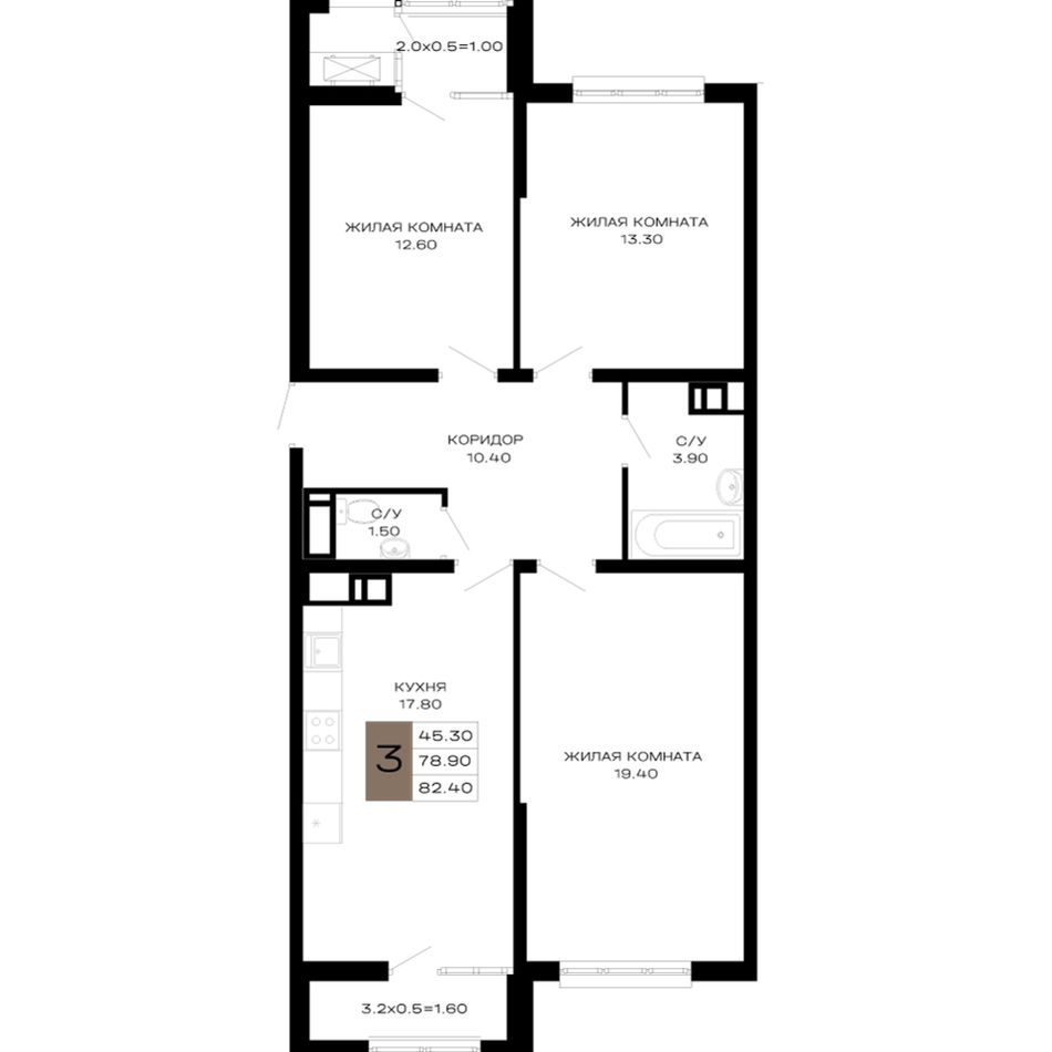 3-комнатная — 82,4 м² 4/23 эт. в Дом 101