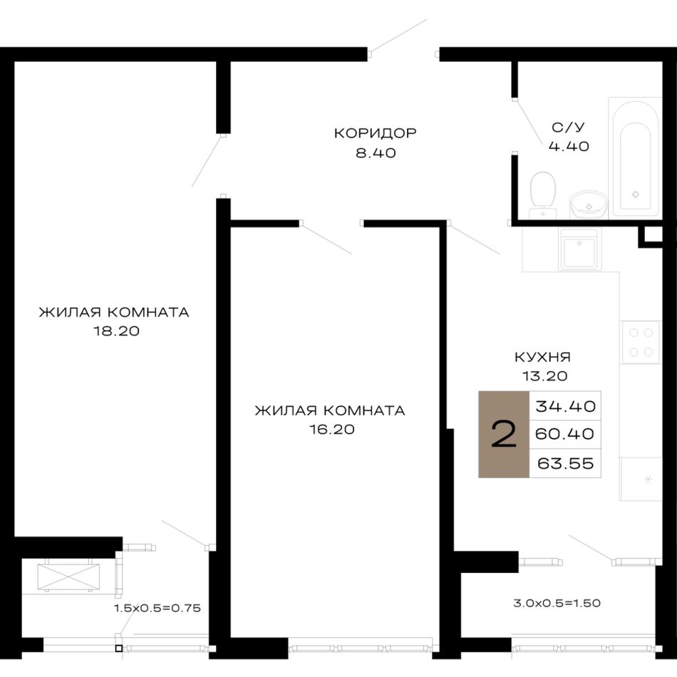 Общая площадь63,55 м²