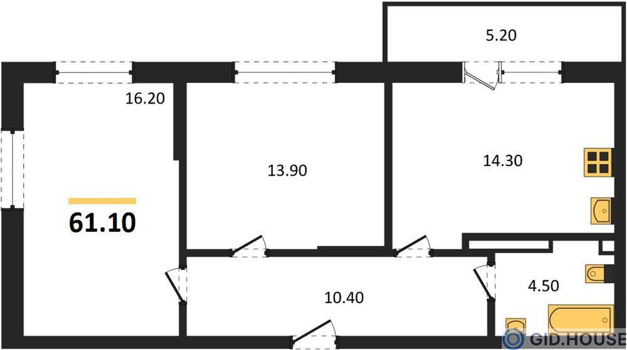 Общая площадь61,1 м²