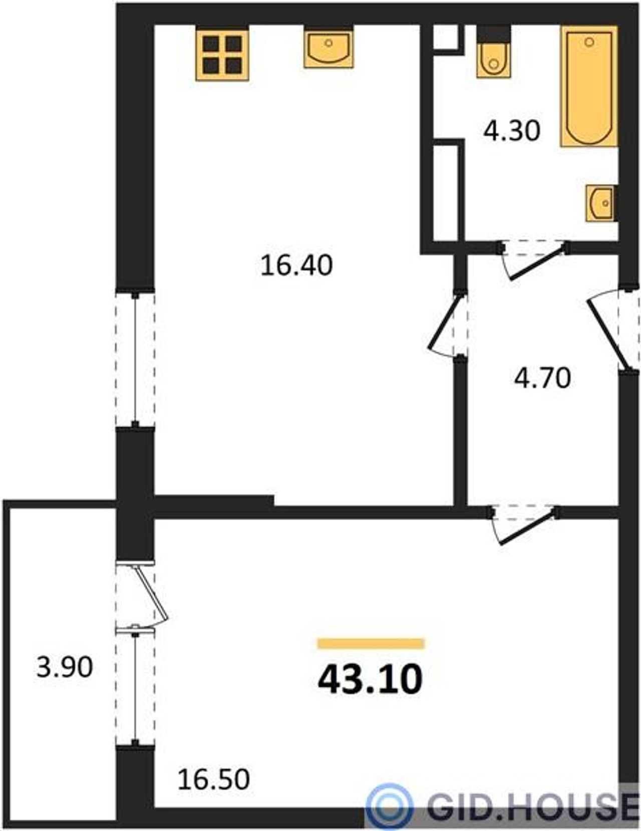 1-комнатная — 43,1 м² 2/3 эт. в Краски