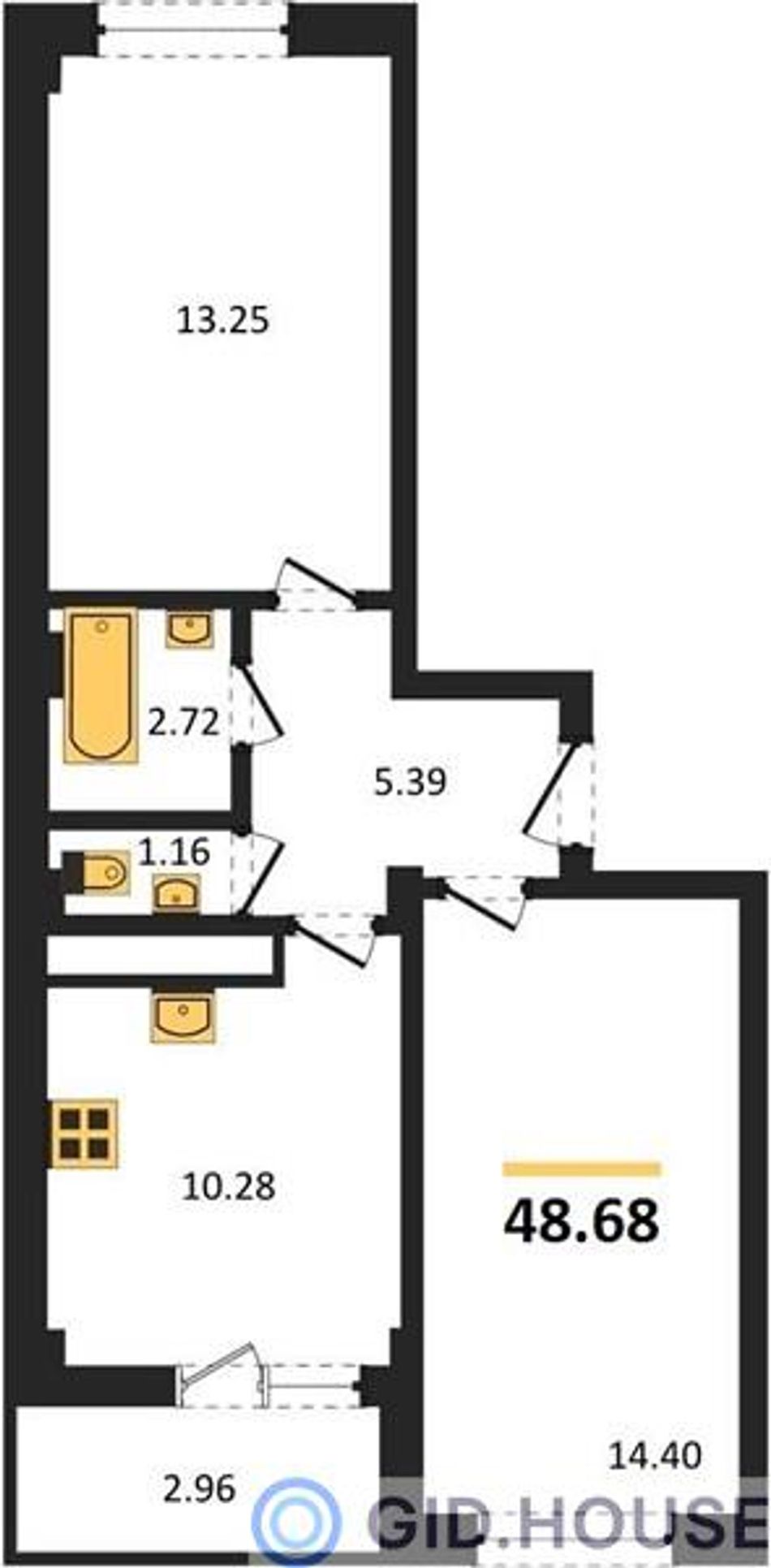 Общая площадь48,68 м²