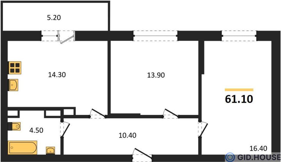 2-комнатная — 61,1 м² 3/3 эт. в Краски