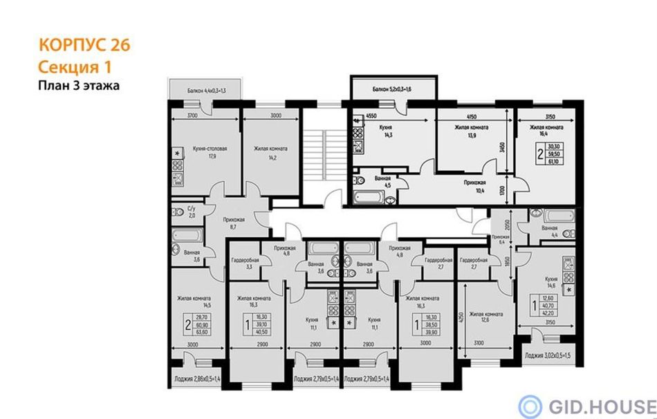 | 3-комн. | 59 - 71 м² | цена по телефону |