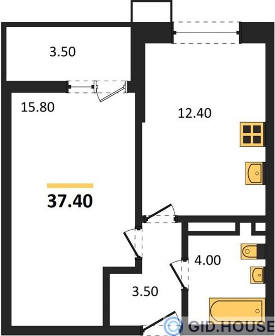 Общая площадь37,4 м²