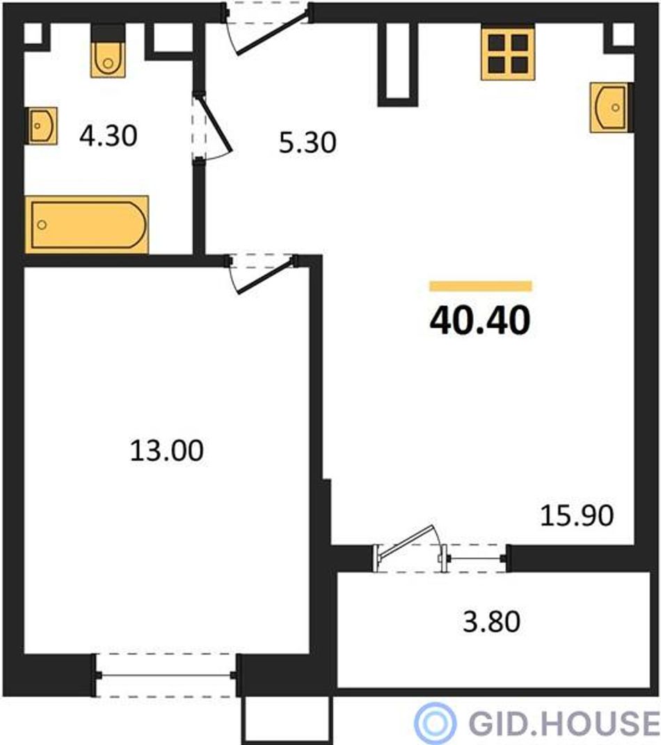 Общая площадь40,4 м²