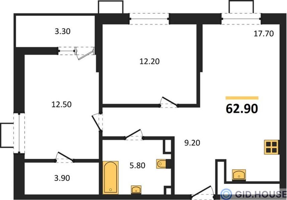 2-комнатная — 62,9 м² 5/7 эт. в Краски