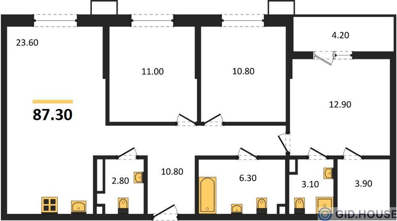 Общая площадь87,3 м²
