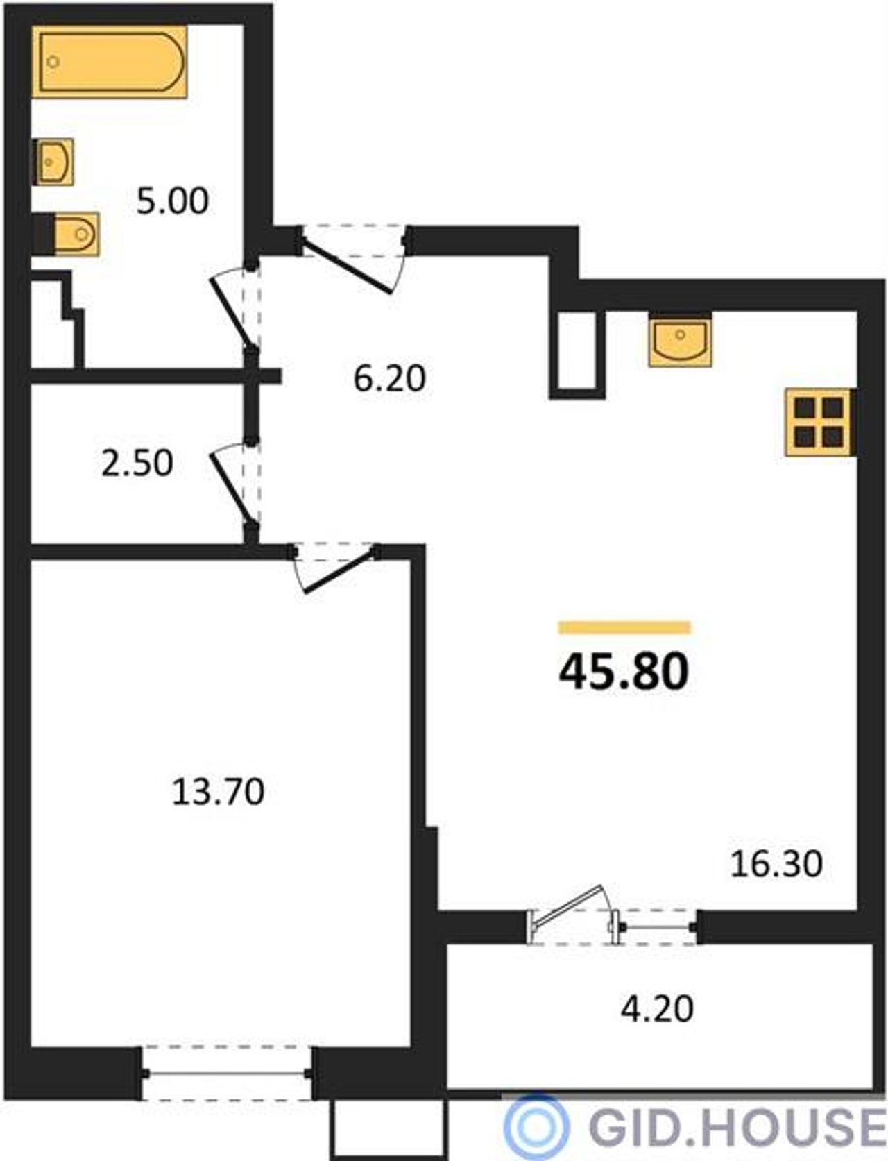 1-комнатная — 45,8 м² 7/7 эт. в Краски