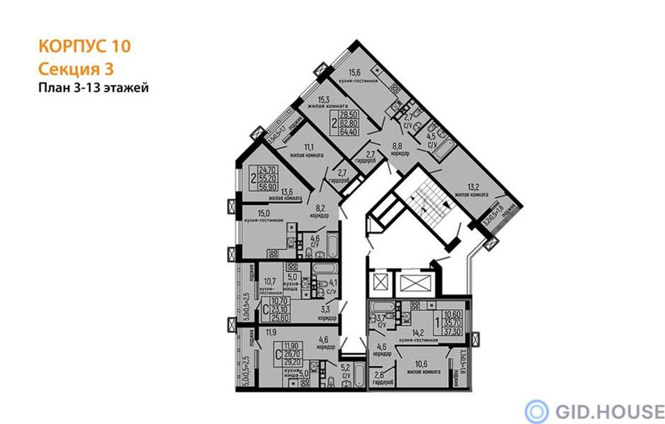 | 3-комн. | 59 - 71 м² | цена по телефону |