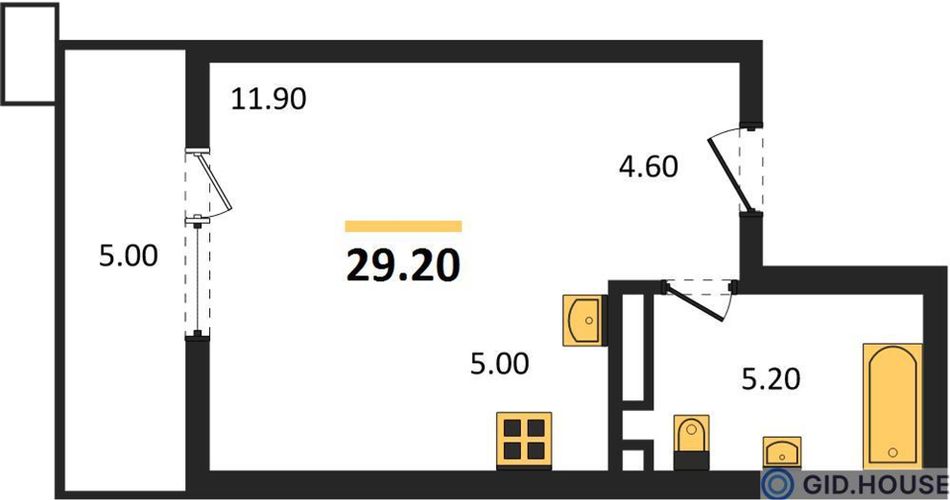 | Студия | 25 - 40 м² | 3,7 - 5,4 млн ₽ |