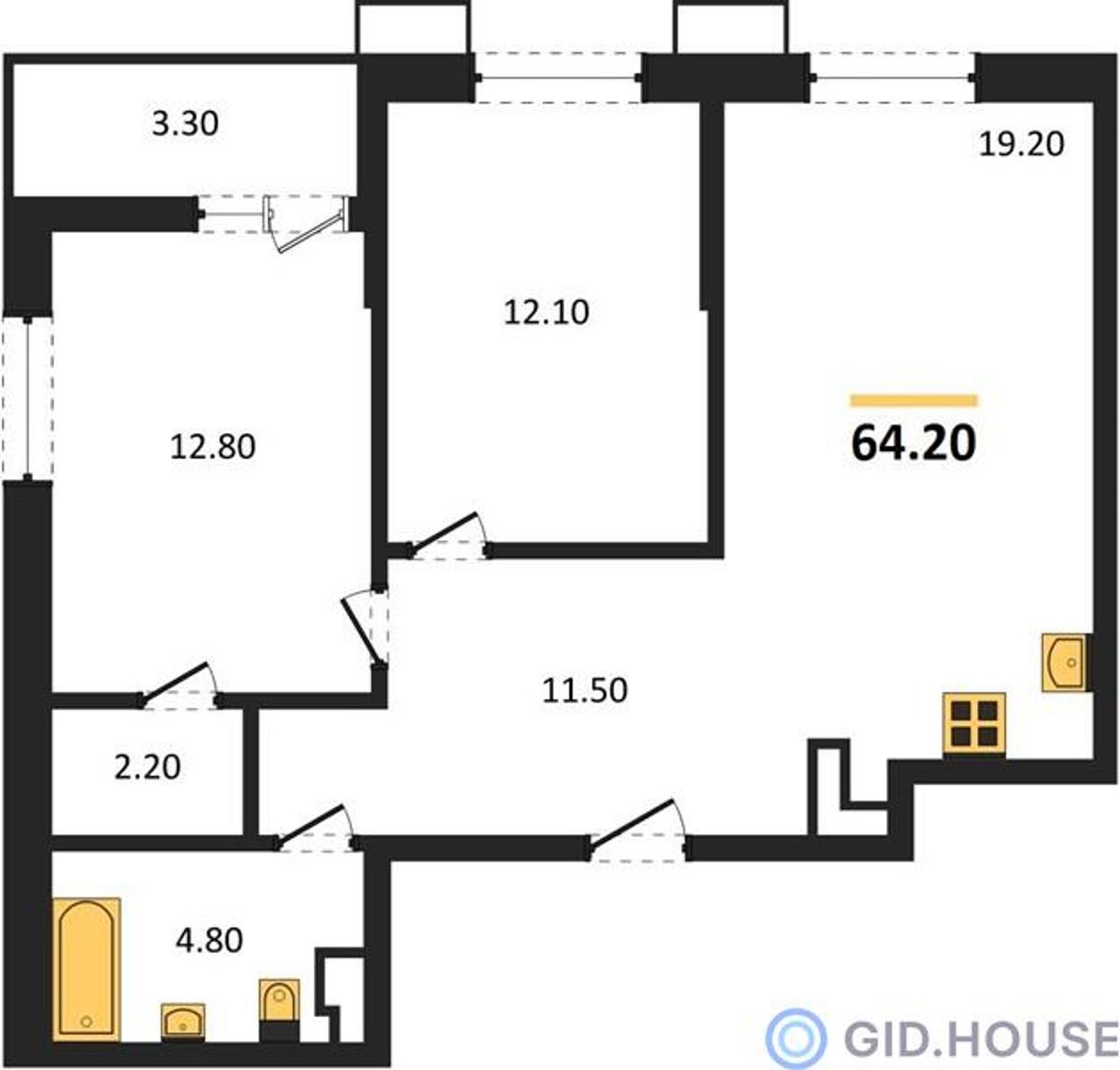 2-комнатная — 64,2 м² 8/13 эт. в Краски