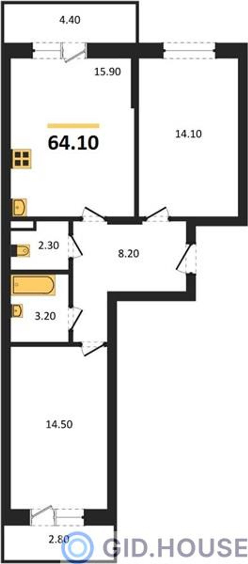 2-комнатная — 64,1 м² 1/3 эт. в Краски