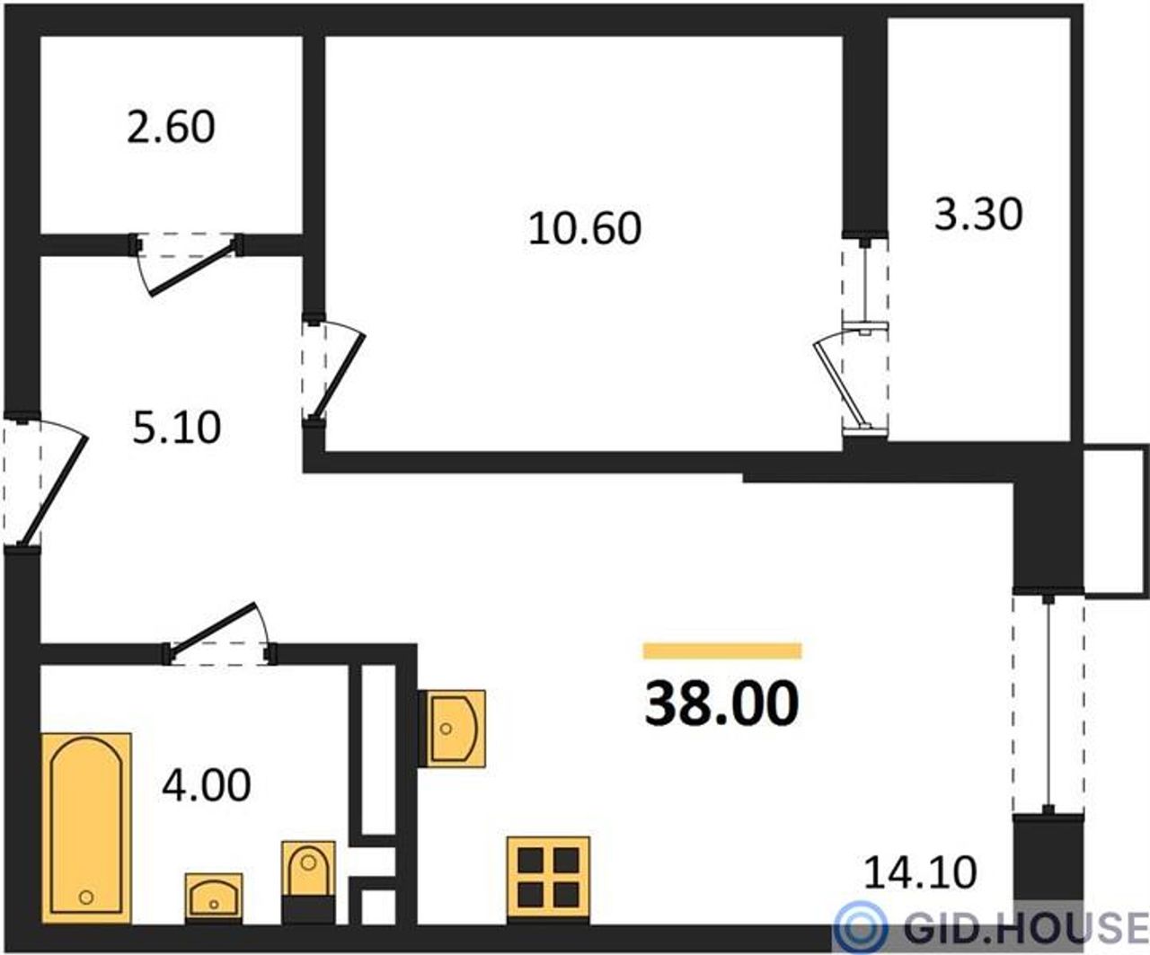 Общая площадь38 м²