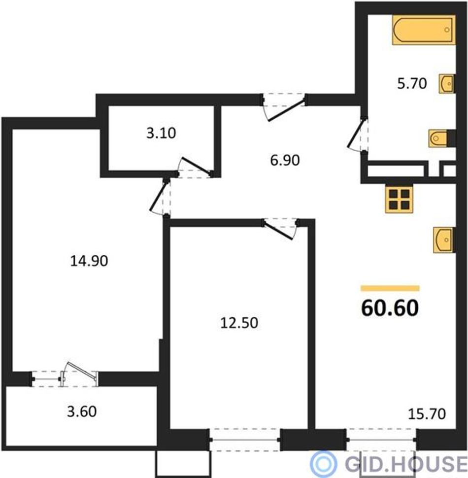 2-комнатная — 60,6 м² 5/13 эт. в Краски