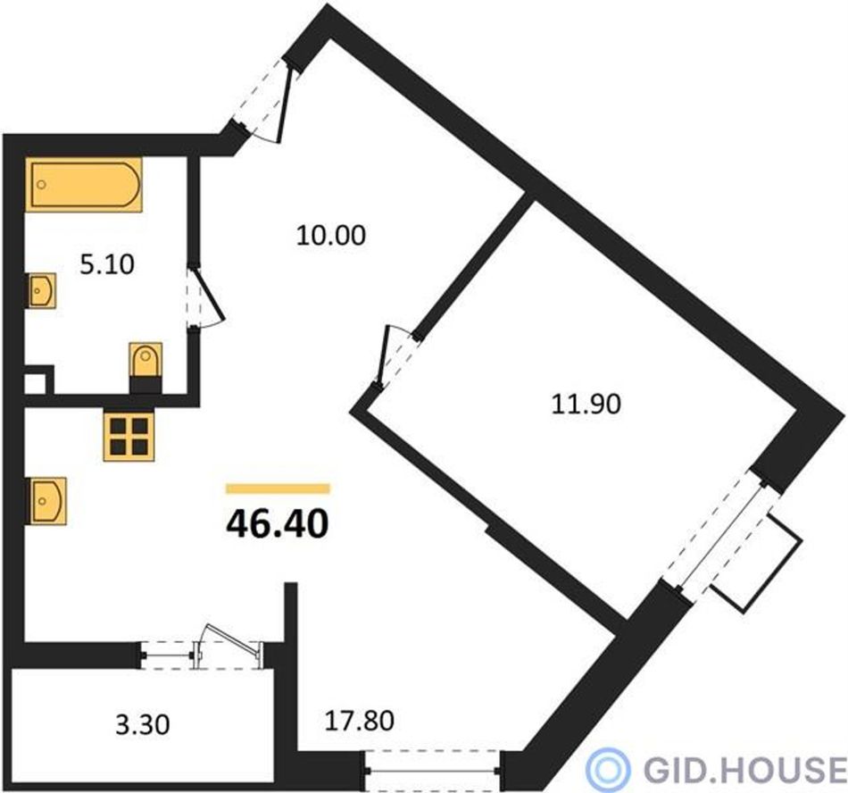 1-комнатная — 46,4 м² 2/13 эт. в Краски