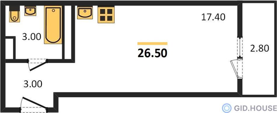 | Студия | 26 - 40 м² | 3,8 - 5,4 млн ₽ |