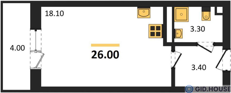 | Студия | 26 - 40 м² | 3,8 - 5,4 млн ₽ |