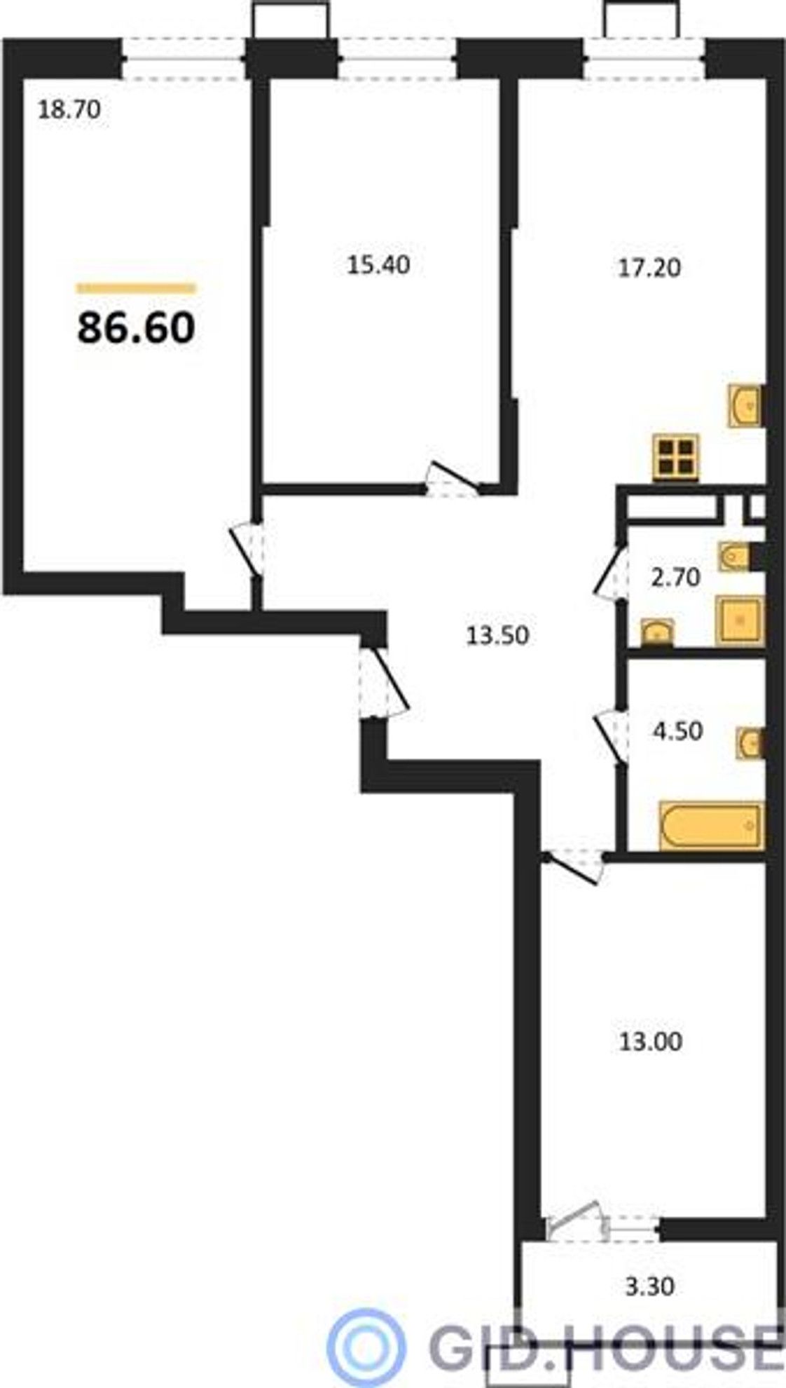 3-комнатная — 86,6 м² 3/13 эт. в Краски