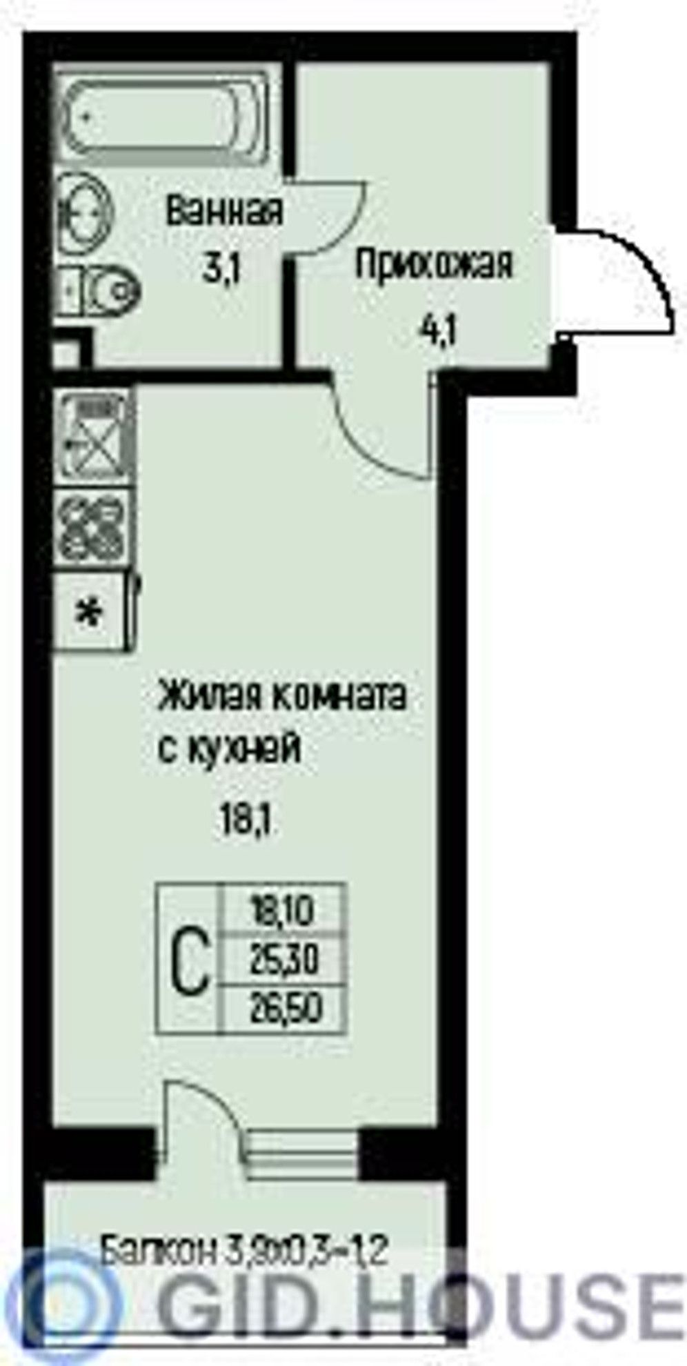 | Студия | 26 - 40 м² | 3,8 - 5,4 млн ₽ |