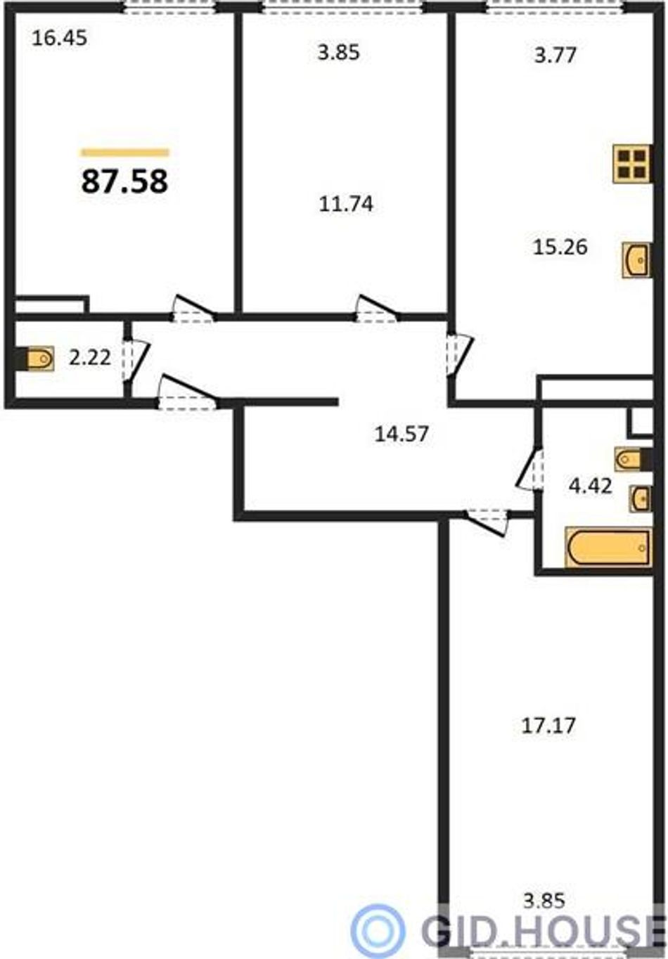 3-комнатная — 87,73 м² 14/24 эт. в Гарантия на Обрывной