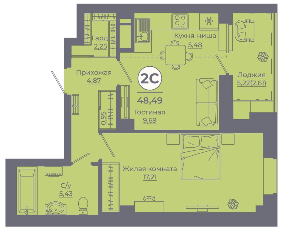 2-комнатная — 48,49 м² 6/24 эт. в Сокол Градъ