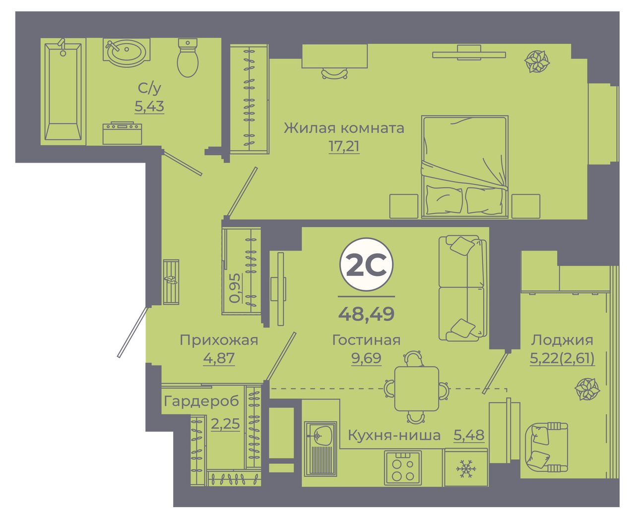 2-комнатная — 48,05 м² 22/24 эт. в Сокол Градъ