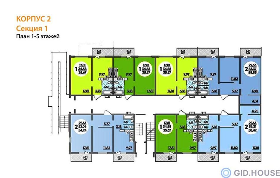 Квартира: 1 к 35,67 кв.м., 1 этаж в комплексе Тихорецк, 2 очередь, корп.2, сдача: 4кв. , этажей: 5, адрес Тихорецк г., Краснооктябрьская ул., д. 60, Застройщик: ВКБ-Новостройки.