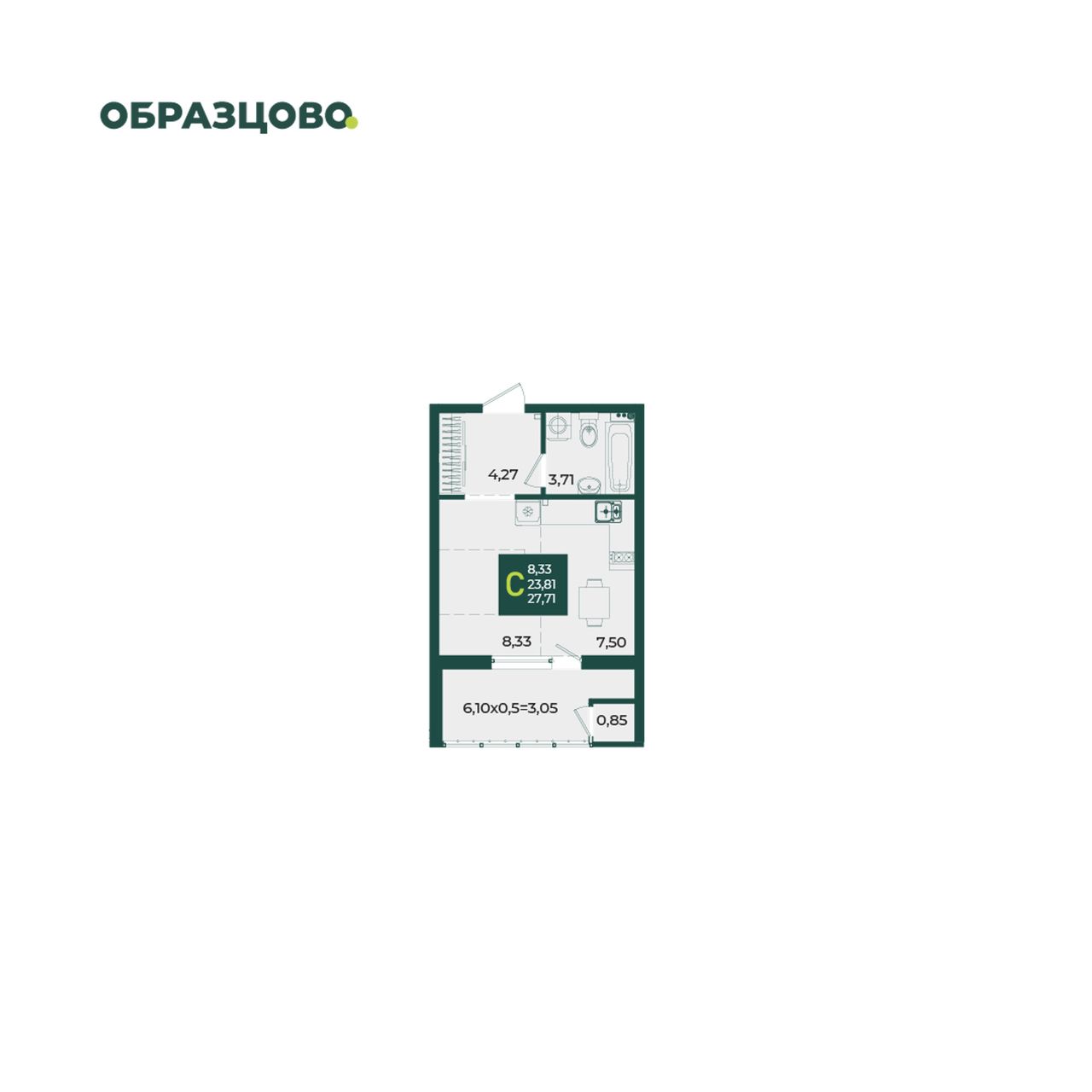 Студия — 27,71 м² 2/18 эт. в Любимово