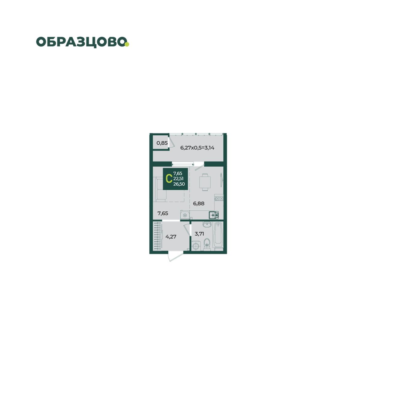 Общая площадь26,5 м²