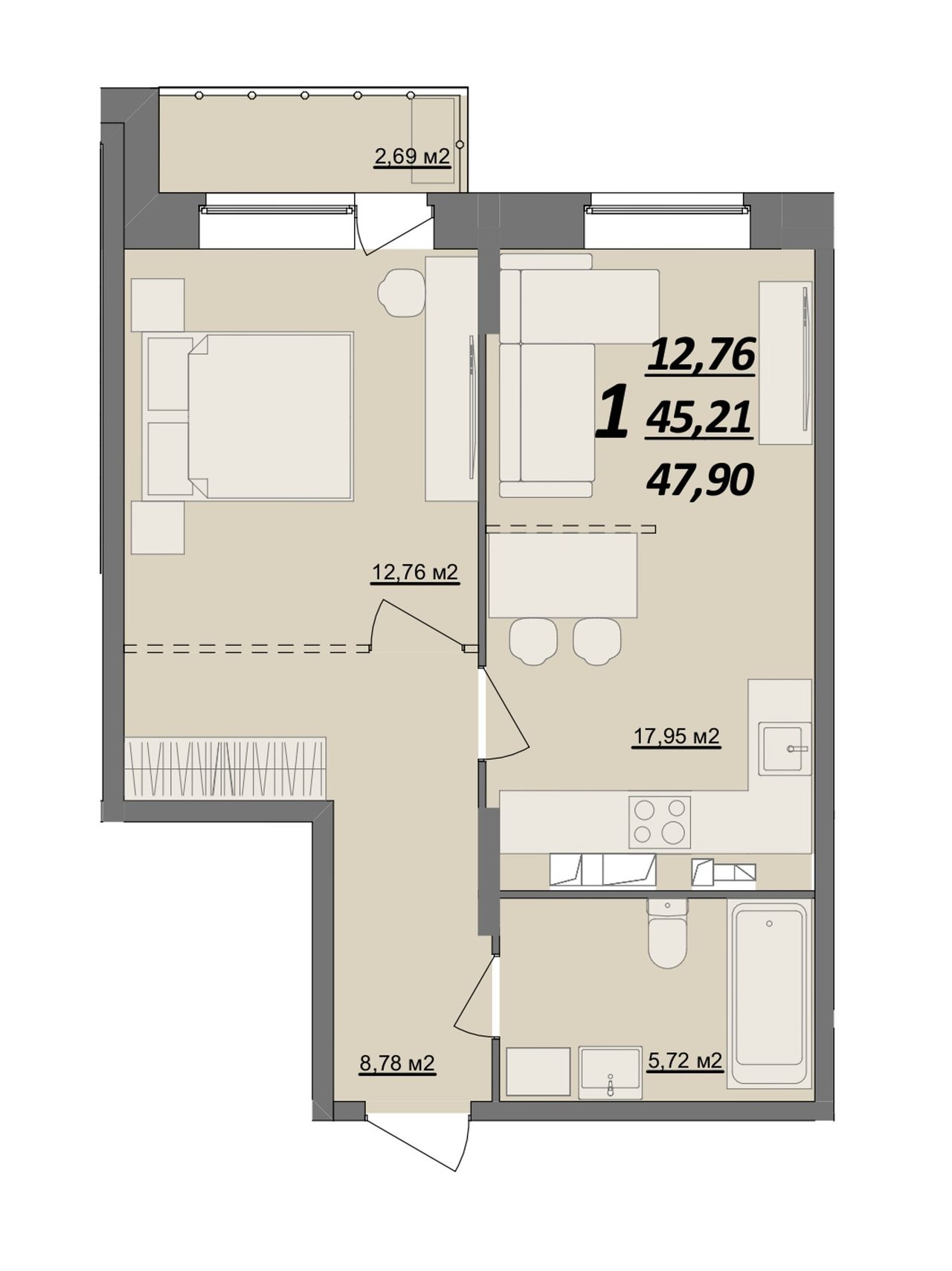 Общая площадь47,9 м²