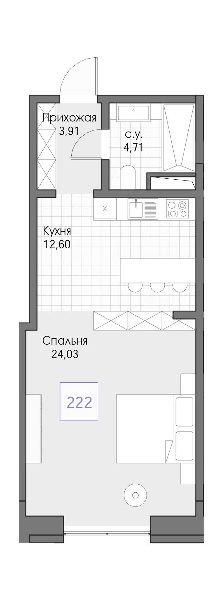 Общая площадь45,25 м²