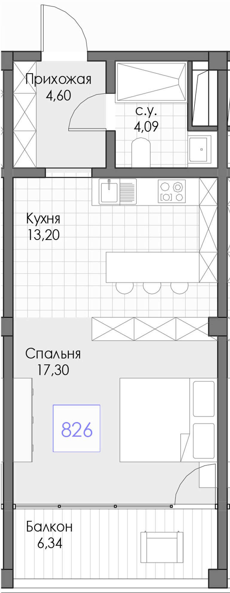 1-комнатная — 45,53 м² 8/13 эт. в BERIY PALACE (БЕРИЙ ПАЛАС)