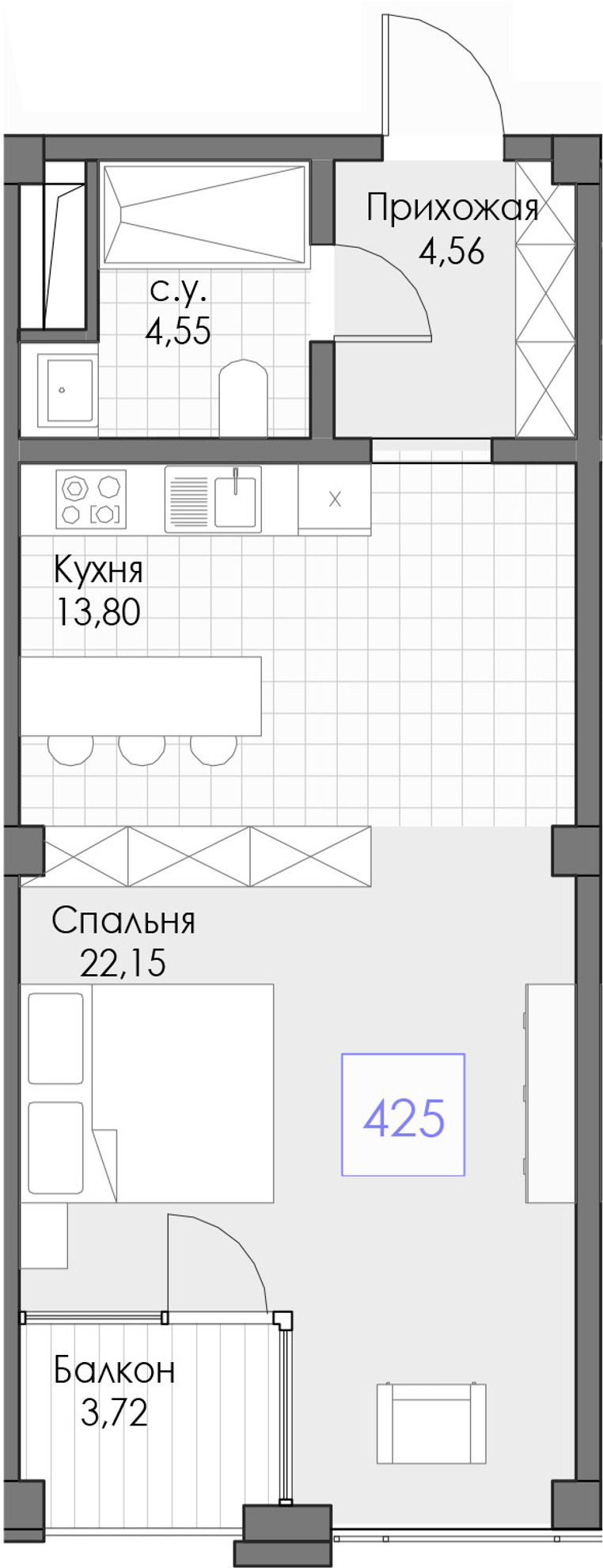 1-комнатная — 48,78 м² 4/13 эт. в Берий Палас