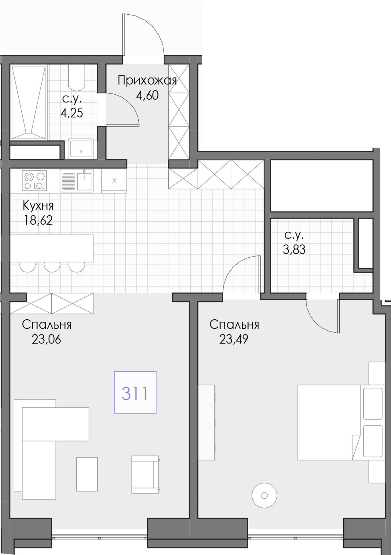 2-комнатная — 77,85 м² 3/13 эт. в BERIY PALACE (БЕРИЙ ПАЛАС)