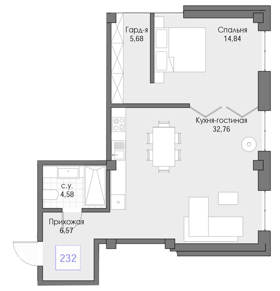 Общая площадь64,42 м²