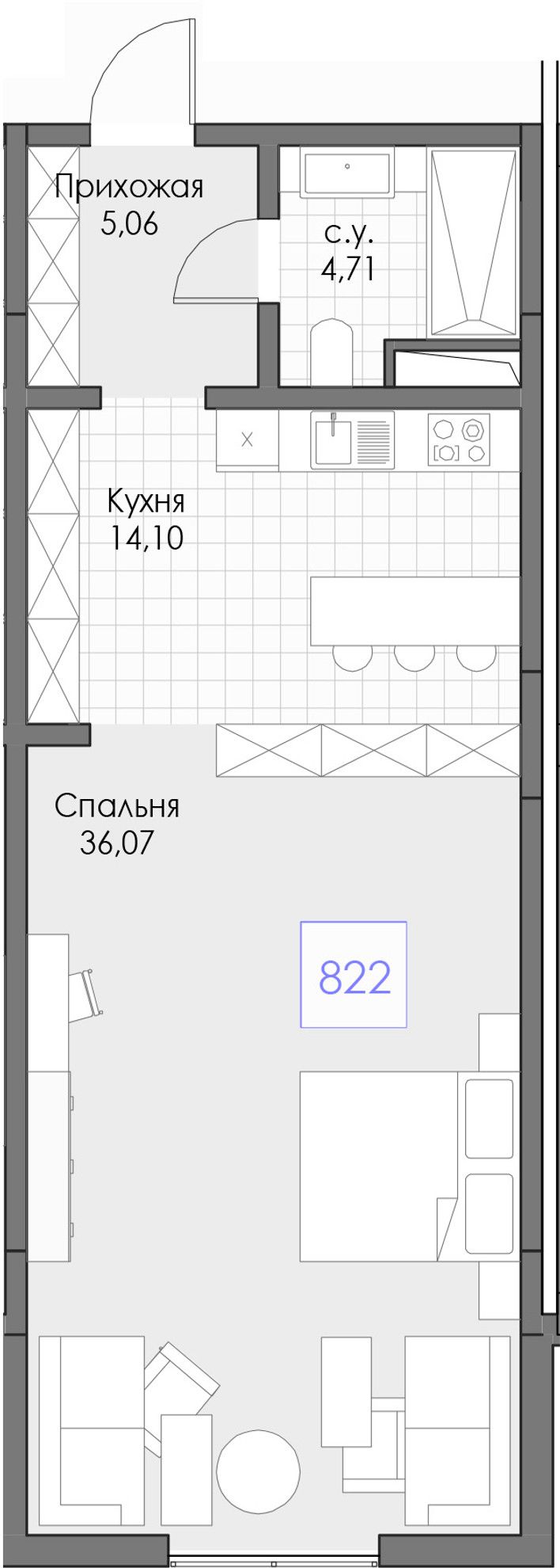 1-комнатная — 59,94 м² 8/13 эт. в BERIY PALACE (БЕРИЙ ПАЛАС)