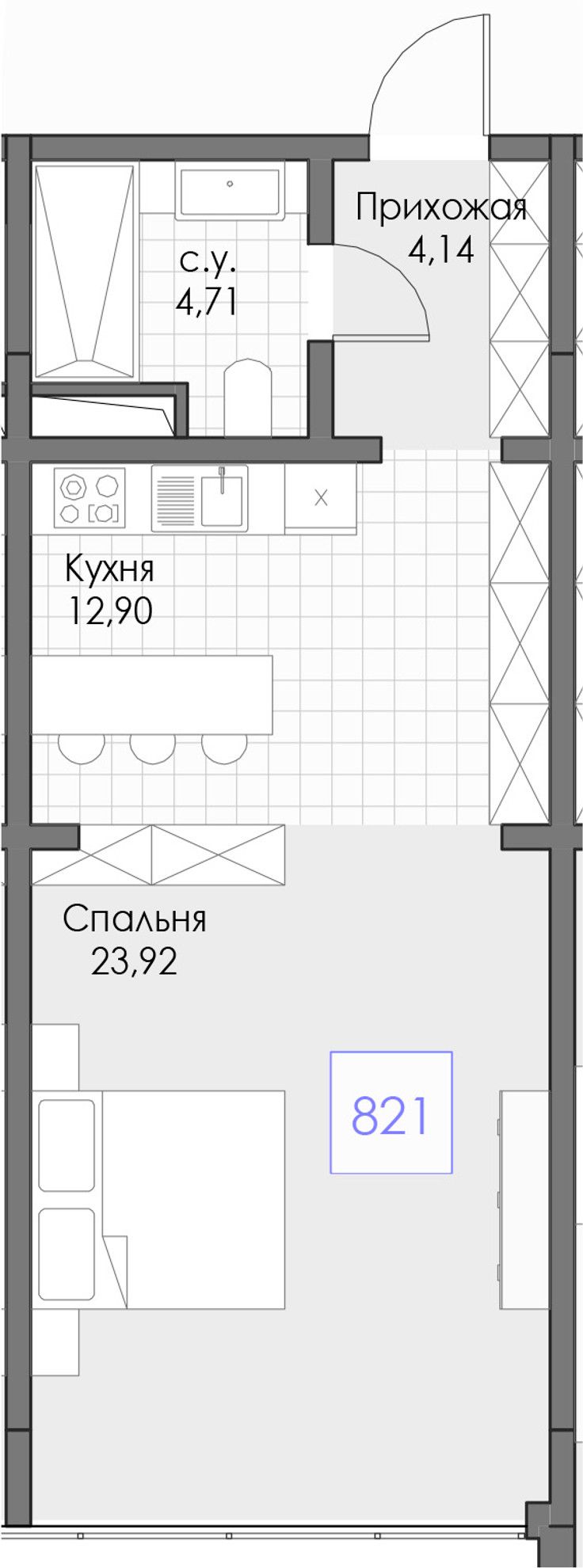 1-комнатная — 45,67 м² 8/13 эт. в Берий Палас