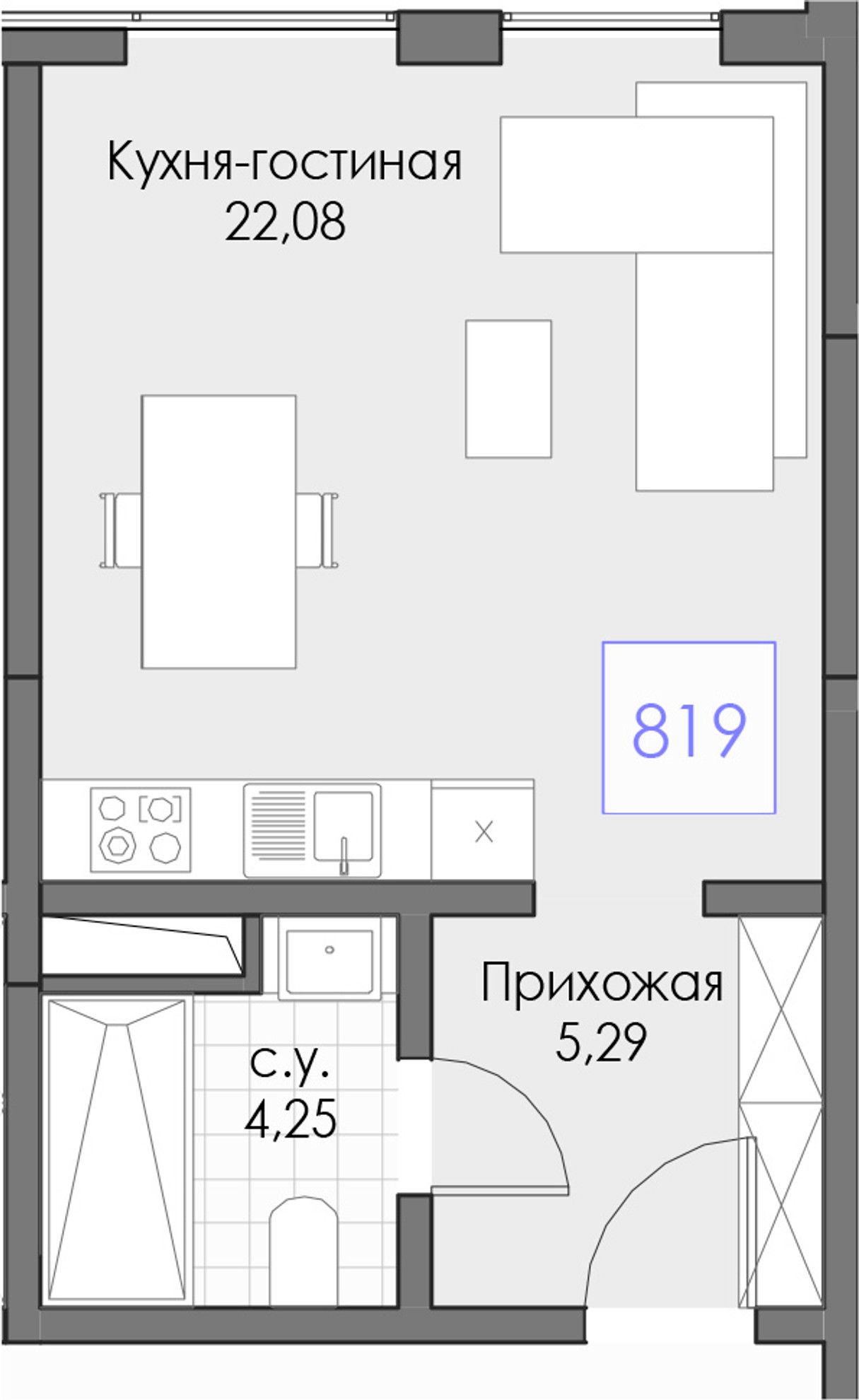 1-комнатная — 31,62 м² 8/13 эт. в BERIY PALACE (БЕРИЙ ПАЛАС)
