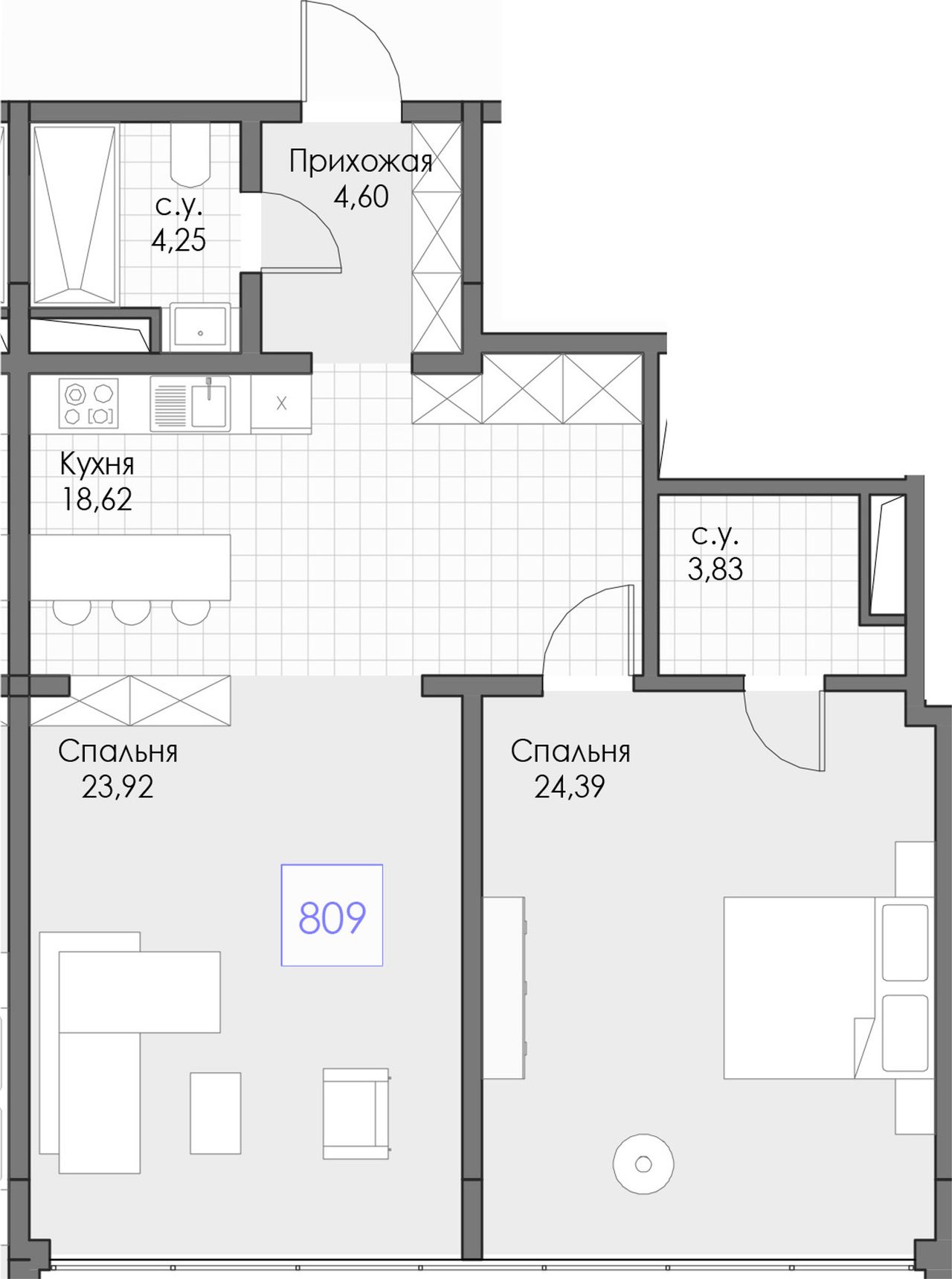 2-комнатная — 79,61 м² 8/13 эт. в BERIY PALACE (БЕРИЙ ПАЛАС)