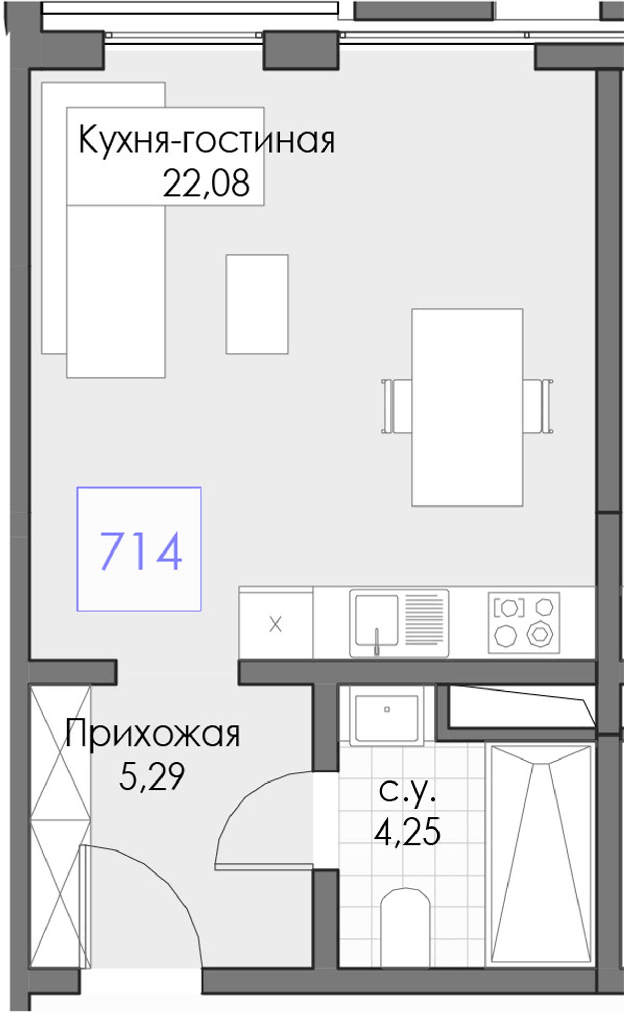 1-комнатная — 31,62 м² 7/13 эт. в BERIY PALACE (БЕРИЙ ПАЛАС)