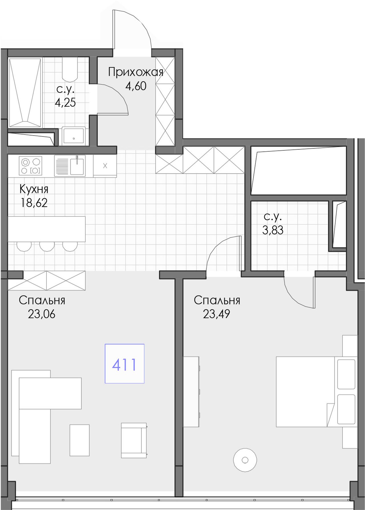 2-комнатная — 77,85 м² 4/13 эт. в BERIY PALACE (БЕРИЙ ПАЛАС)