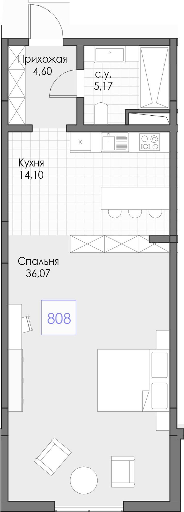 1-комнатная — 59,94 м² 8/13 эт. в BERIY PALACE (БЕРИЙ ПАЛАС)
