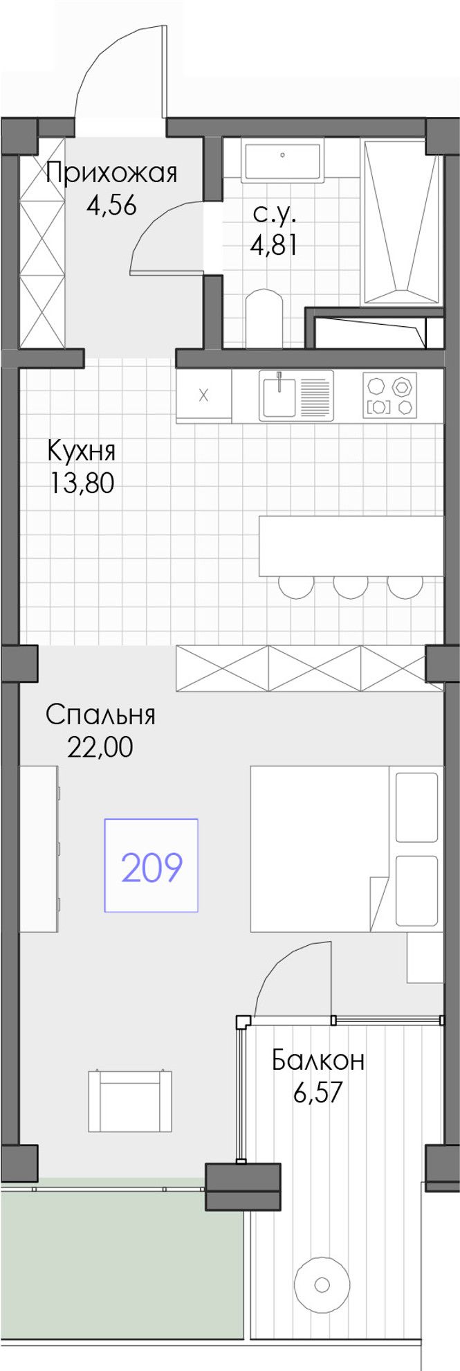 1-комнатная — 51,74 м² 2/13 эт. в Берий Палас