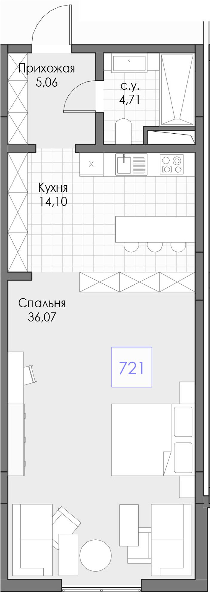 1-комнатная — 59,94 м² 7/13 эт. в Берий Палас